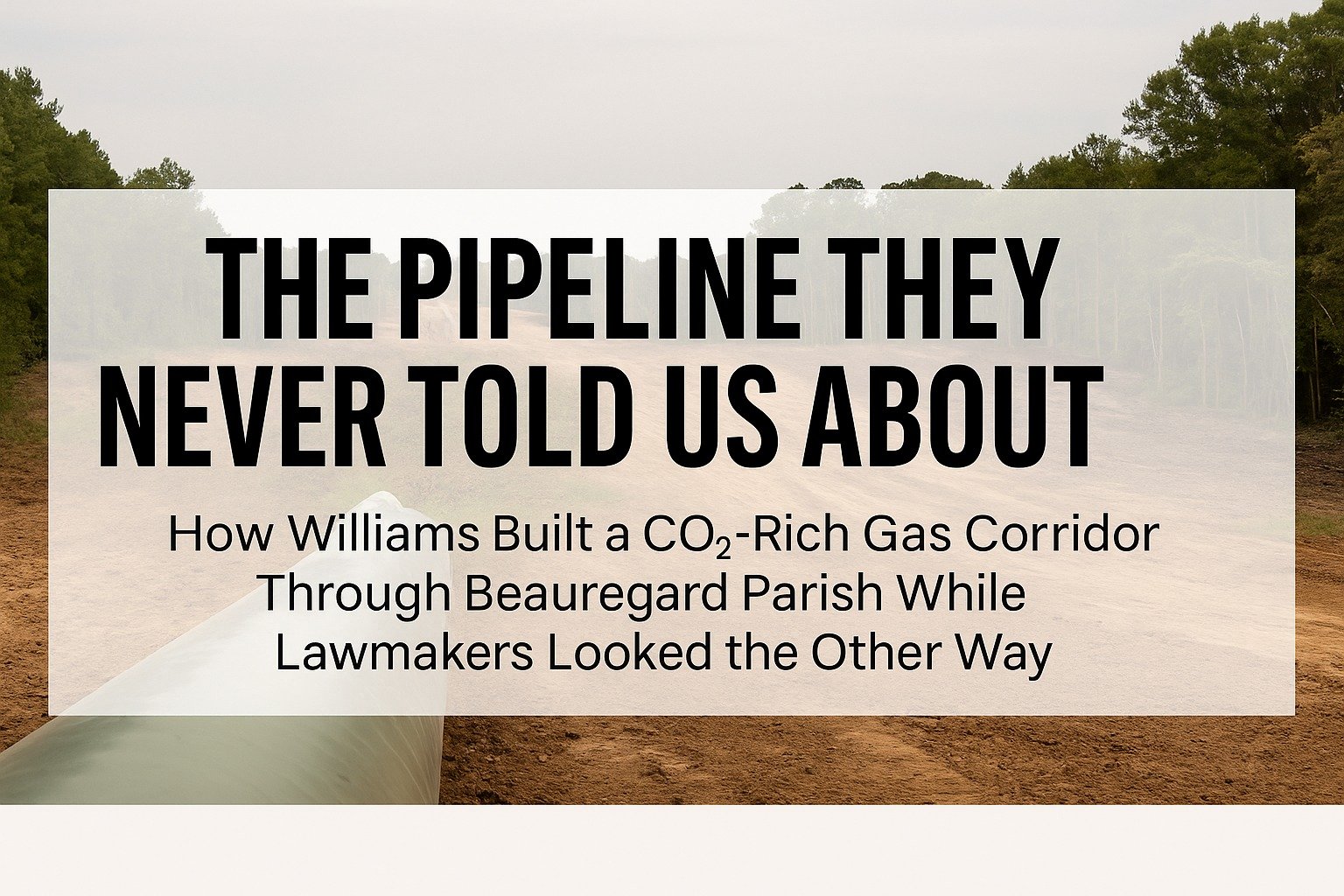 How much did our elected officials know? And why didn’t they warn the people of Beauregard Parish before allowing Williams to build a massive gas line that will bring in CO₂-rich gas, strip it down, and vent the excess into our air?