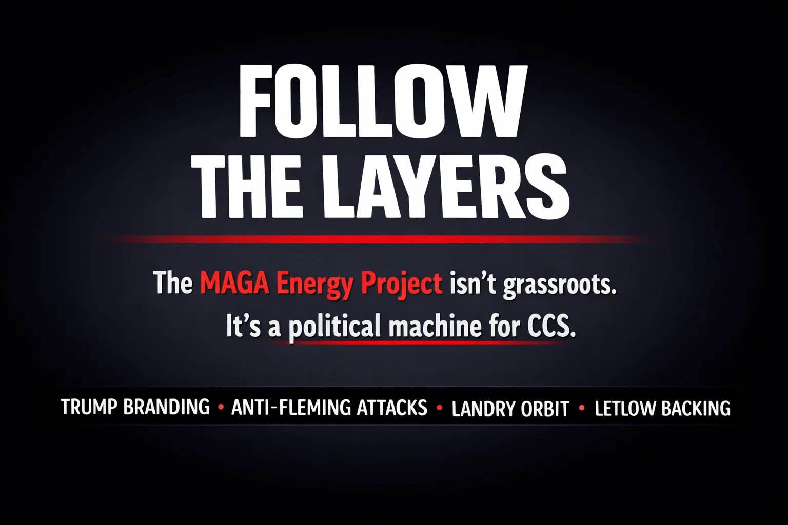 When you strip away the branding, what remains is a coordinated political effort to protect carbon capture, damage John Fleming, and shape the Senate race for the benefit of the people already holding power. (MAGA Energy Project)
