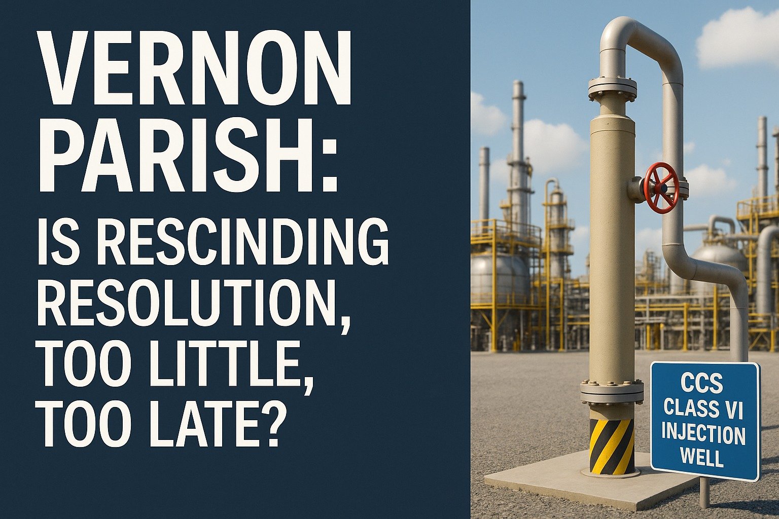 Vernon Parish is poised to reverse its stance on carbon capture and sequestration (CCS) projects, just two months after controversially endorsing them. On September 15, 2025, the Vernon Parish Police Jury voted to rescind two ordinances that had opposed CCS and instead passed a resolution supporting “industries that provide economic development to Vernon Parish, whether or not they require CCS”. The move outraged many locals, as parish officials had originally joined a regional alliance to halt unapproved CO₂ storage projects until more was understood. Now, facing intense public backlash and “displeasure” voiced across social media, the police jury is expected to formally repeal its pro-CCS resolution on November 17, 2025, effectively restoring the parish’s opposition to carbon injection wells.